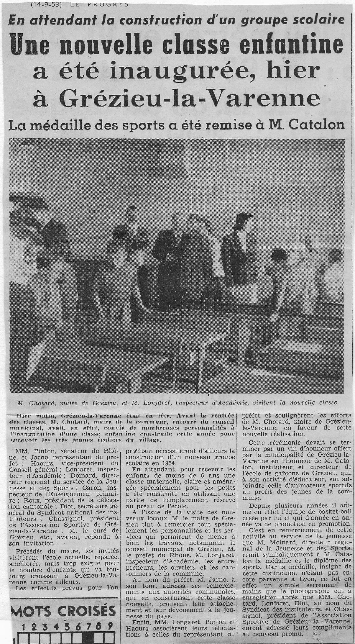 Un article du progrès de 14/09/1953 sur l'inauguration.